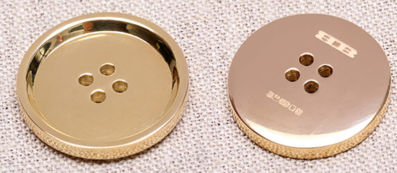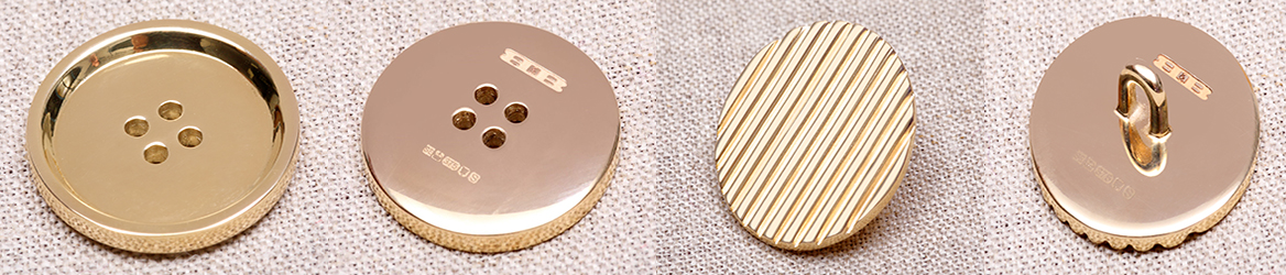 ロンドンの工房で、ジュエリー専門デザイナー、スティーブン・アインホーンが特別にデザイン・製作したゴールドボタン。ゴールドの高騰の中、資産にもなるボタンがイギリスのライニングカンパニーから登場!