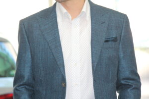 ブルーのグレンチェックで仕立てるダブルスーツ【オーダースーツ 広島】