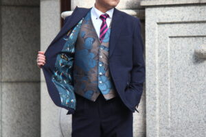 ジョルジョ・アルマーニで生地で仕立てたベスト付きスーツ【オーダースーツ広島】