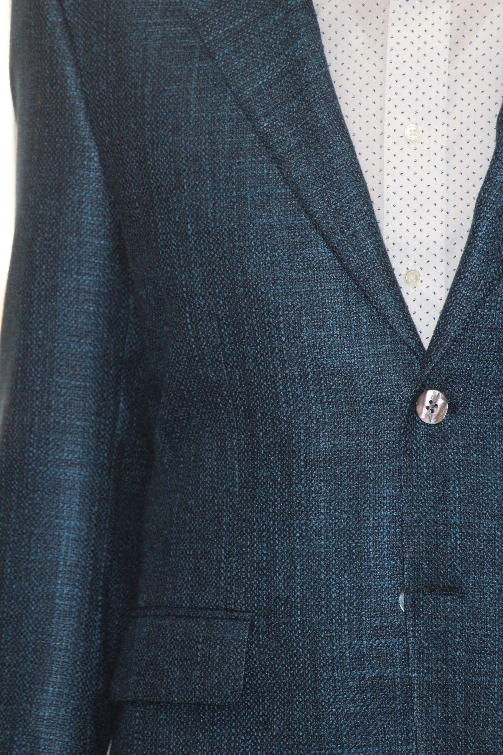 1881年創業の長い歴史の中を持つチェルッティの生地は、美しい発色と高級感溢れる光沢が特徴のイタリア5大ブランドのテキスタイルブランド。チョイスしたのは、なかなかお目にかからないターコイズブルー。光の反射で多色の輝きが楽しめます!