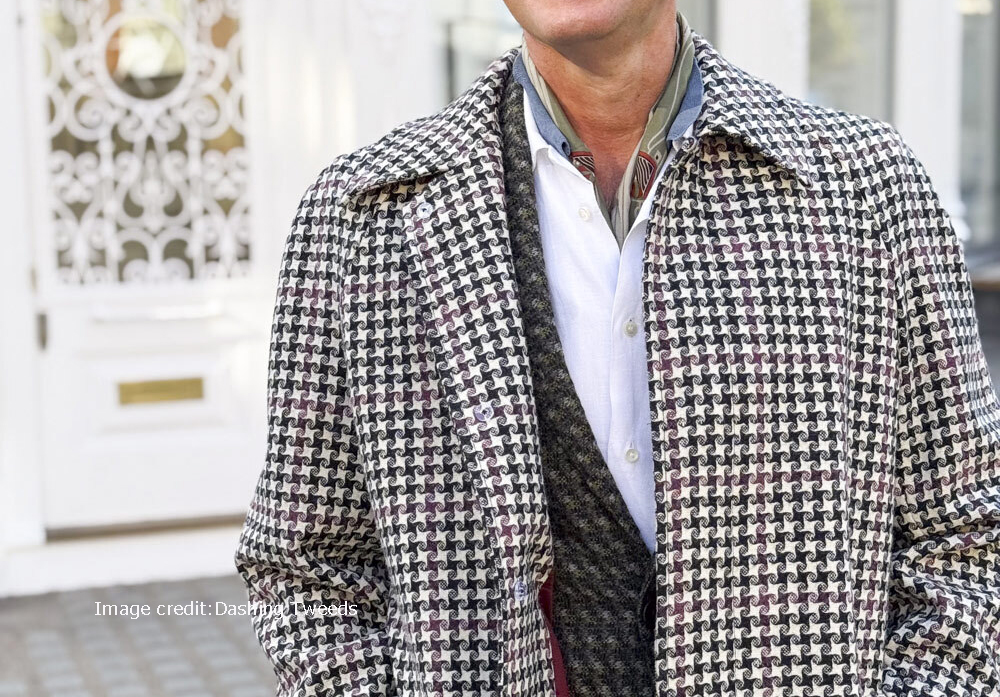 見れば見るほど味の出てくる新格子柄。本物志向で、遊び心のあるダッシングツイードならではの新作生地。長年愛用するコートで仕立てるのがおススメ!/生地&photo:dashing Tweeds