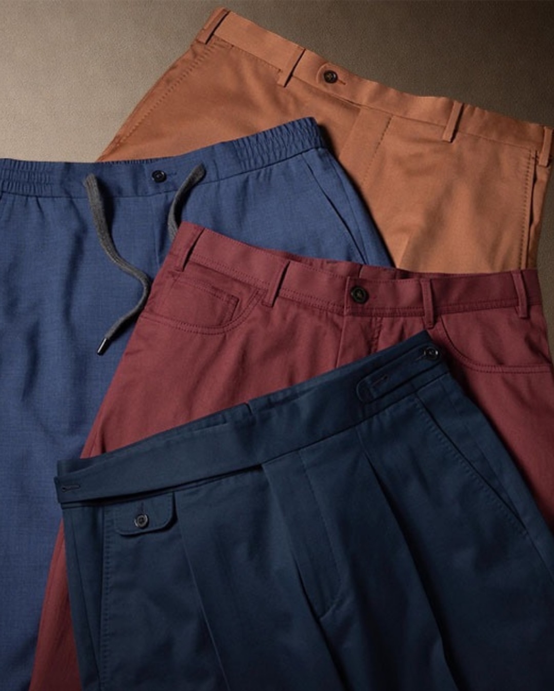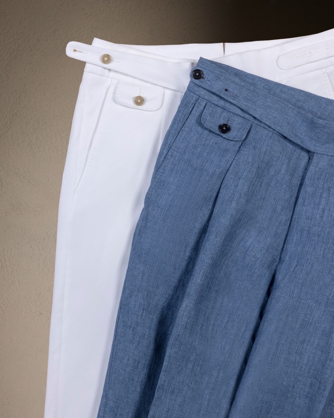 夏の主役のオーダーパンツは、麻やサマーウールで軽く仕上げて、デザインを楽しみましょう!
