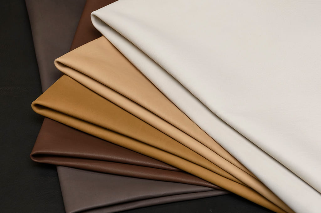 下の画像のレザーは、北海道産ベビーカーフ原皮を使用した、キメの細かいなめらかな質感のカーフレザー。カーフ本来の質感を活かすため、染料のみで仕上げた色も手触りもやさしい風合い。お好みでイタリアンレザーも用意してます!