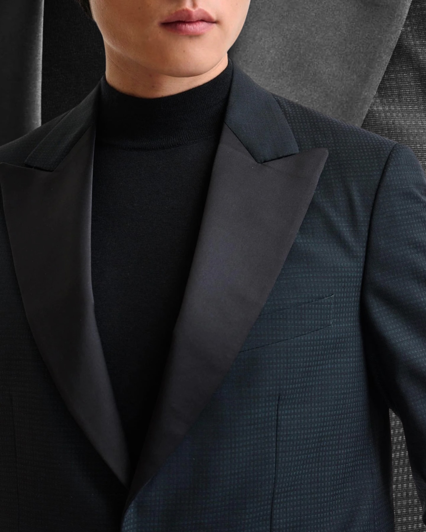 手元とVゾーンを決めて過ごすクリスマスナイトスーツ【オーダースーツ 広島】