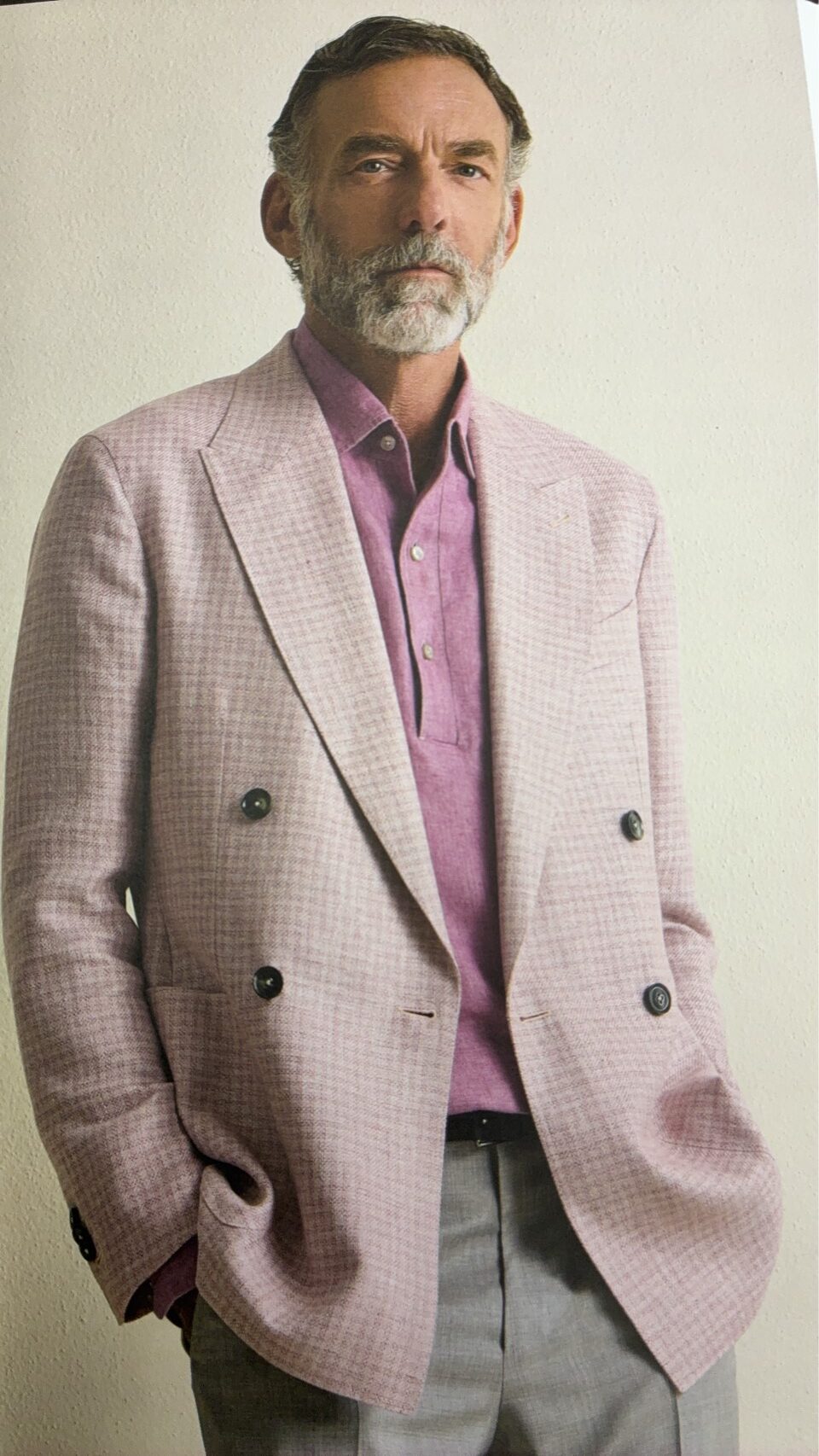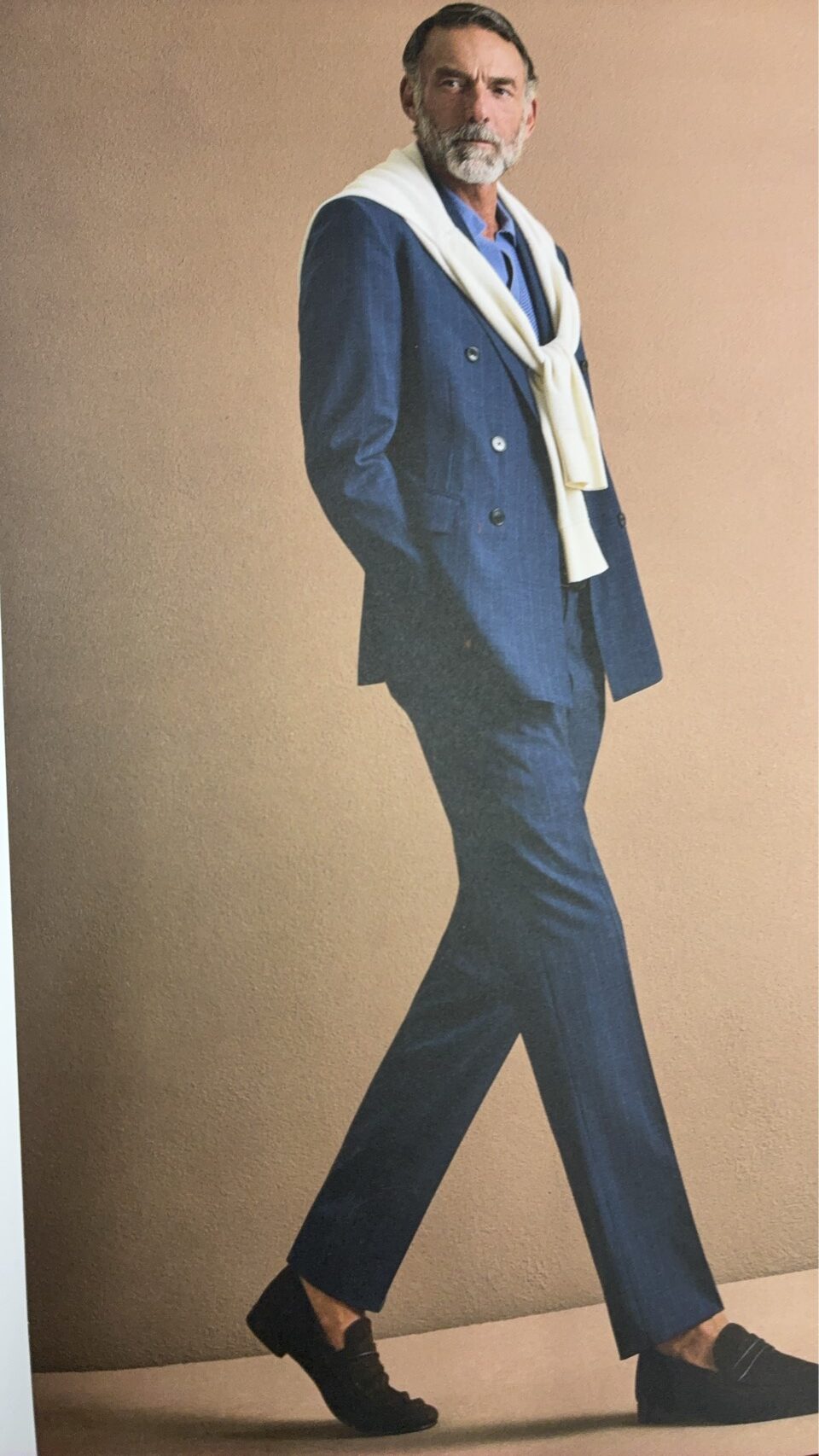 緩やかなシルエットが特徴的な今シーズンのエルメネジルドゼニア。ポロシャツやノンネクタイが新作のモデルブック【アンテプリマ】の大半を占めています。中でも注目は、ニットをストールのように羽織るニュースタイル。スーツと同系色のニットを首回りにさりげなく巻くのが、ゼニアの提案する抜け感コーデ。ぜひ今年のSSでお試しあれ!