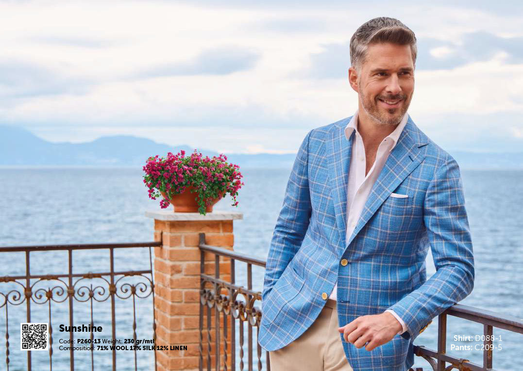 サラリと羽織れて、シャキーンとキマルサマージャケット。無地を揃えたら、今年はトレンドの格子側にチャレンジ!/生地・Photo:Ariston
