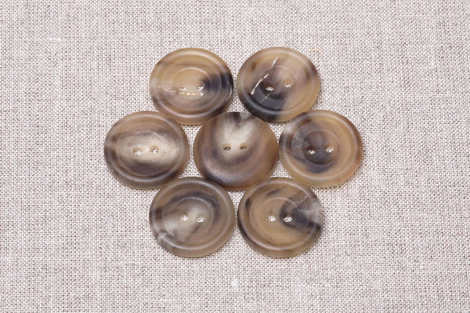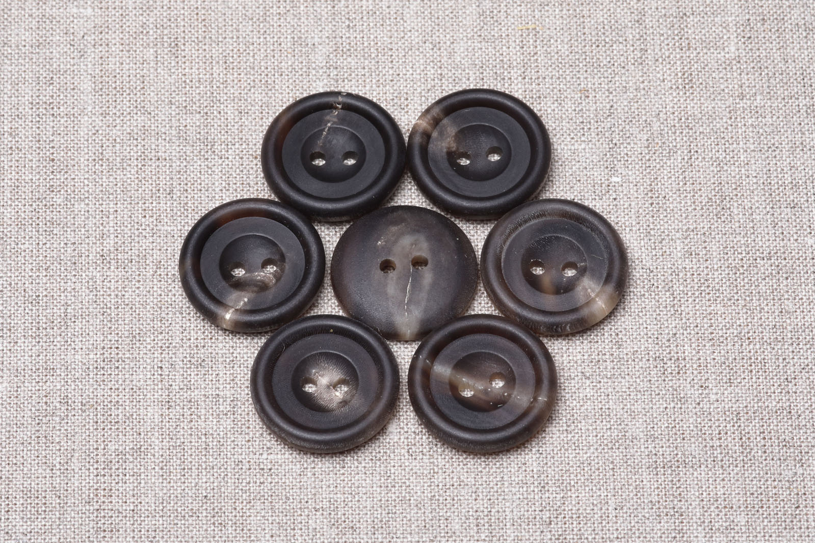 本水牛ならではの独特の色むらの味わいが、ヒビにみえたようです。逆に水牛ボタンは、合成樹脂のボタンと比べて割れにくくとても丈夫なので、コートやハイクラススーツのように「長年愛用したいアイテム」に使用されることが多いボタンです。